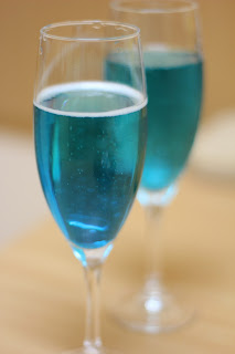 Nu ma pot abtine! Navigand de mama focului prin blogulet sa imi mai amintesc si eu cam cum arata :) am sesizat cu maxim extaz inca o persoana inscrisa aici! Stiu ca de fiecare data am sarbatorit treaba asta cu un cocktail, insa ultima perioada mi-a schimbat prioritatile si am renuntat (cu bucurie, totusi) la combinatiile de alcool, ca sa faci cocktail-uri din sucuri mie nu mi se pare nostim. Acum insa, revenim insa mai retinuti la obiceiuri vechi (responsabilitatile nu ne mai permit testari aprofundate :)) asa ca recomandam urmatoarea combinatie, in special cu ocazia botezurilor, daca vreti ca invitatii sa fie luati usor prin surprindere atunci cand fumul artificiilor de pe tort aproape strica toata prezentarea. Ca sa nu mai zic ca se asorteaza cu azuriul din martipanul de pe tortul unui baietel... Noi am baut combinatia la after-party cu doi buni prieteni iar daca vor avea ei o "Baby Girl" candva, promit sa adaptez rapid combinatia pentru a corespunde situatiei.